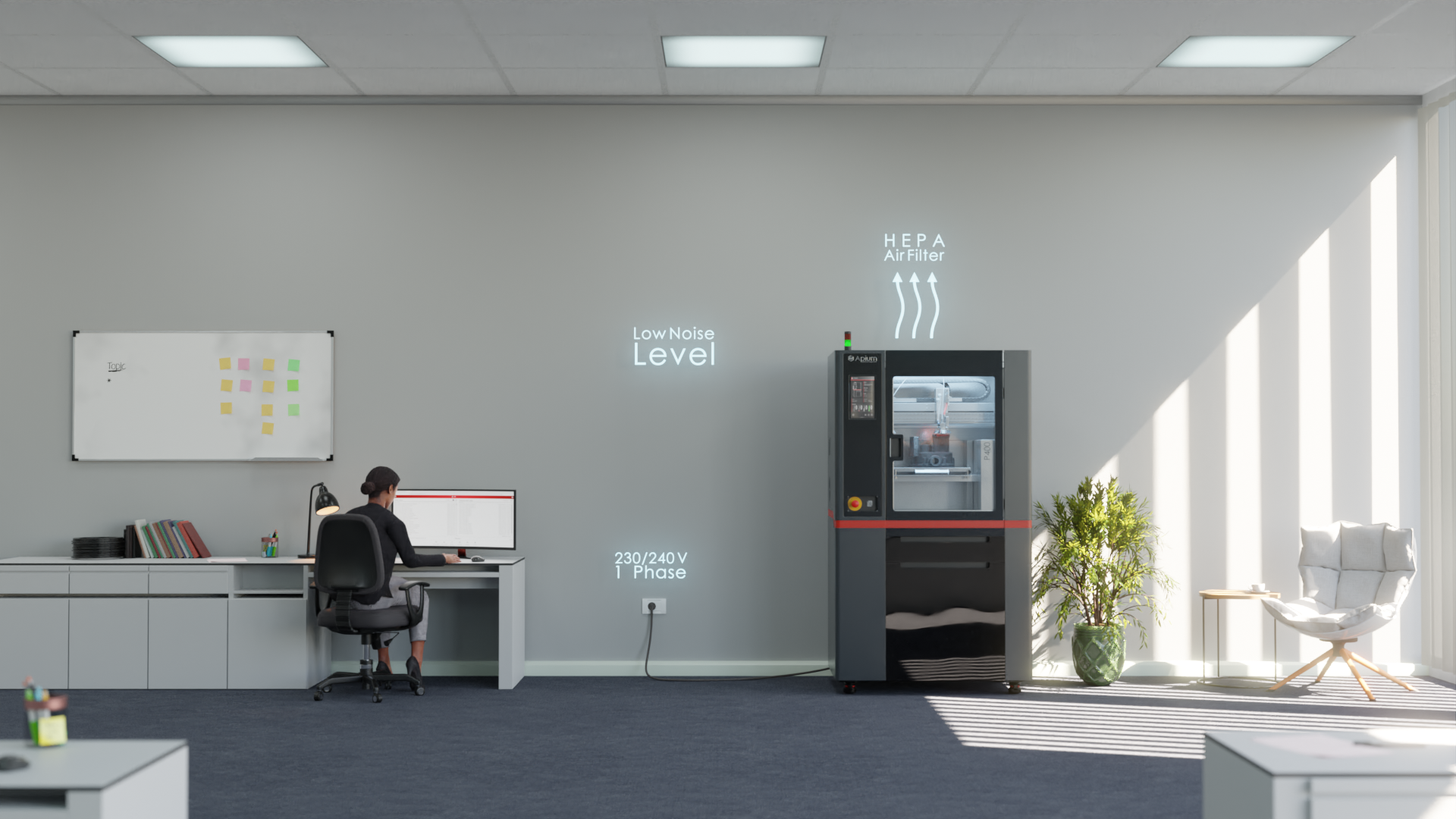 Le stampanti 3D Apium sono basate sulla tecnologia FFF (fabbricazione di filamento fuso), grazie ad esclusive ed innovative caratteristiche tecniche hardware e software, permettono di stampare 3D polimeri tecnici come ad esempio: PEEK, PEEK CF/GF, PPSU, PVDF, PEI ULTEM 9085, PA-CF, PP.