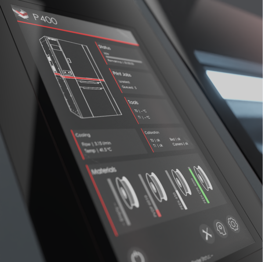 - Materiali processabili (produttori terzi): PEEK, PEEK-CF, PEEK-GF, PEKK, PP, PP-CF, PEI ULTEM 9085, PEI ULTEM 1010, PPSU, PPS, PPS-CF, PVDF, PA-CF, PA-GF, ABS-ESD, ABS-GF, ASA-CF, PC-ABS.